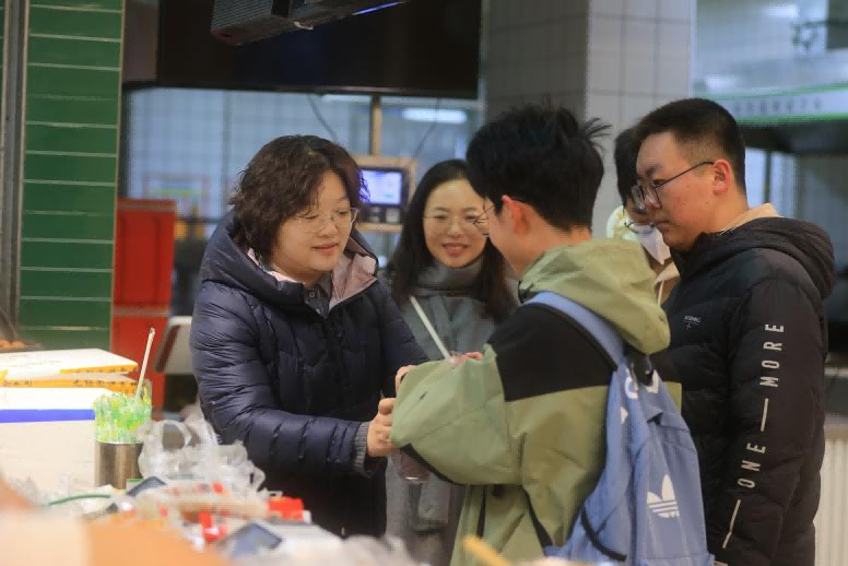 学院党委副书记王小露为学生发放爱心早餐